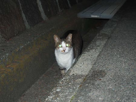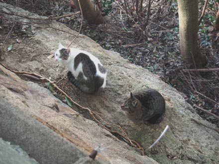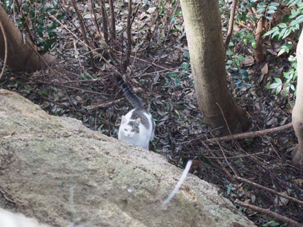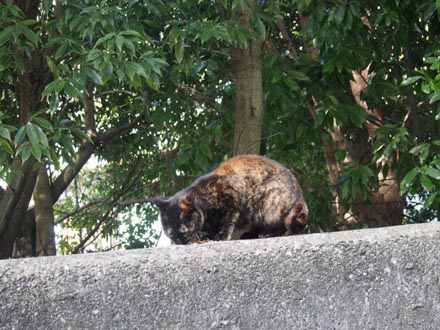 狭い塀の上は 対向車が来るまでに 渡り切らんとね 」