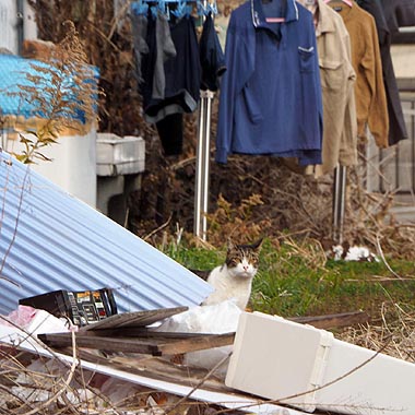 簡易水道の水が 冷たすぎるから ネコの体で 温めてやってるんだ 」