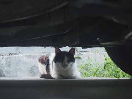 ネコさん もう少し奥の方が 日が当たらなくて 楽なのでは