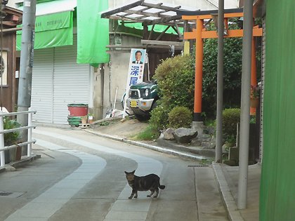 早朝ハイキングの人たちの時間帯が過ぎると 山麓の道にはもう一度朝の静けさが戻ります ネコももう一度パトロールに出かけます