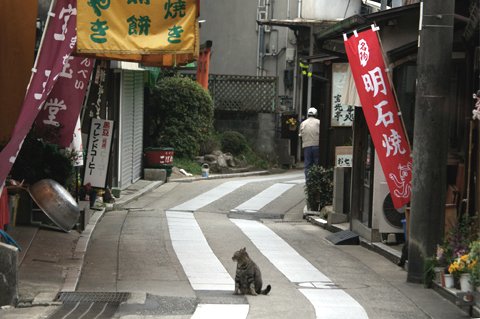 親友の飲み屋のおじさんの店に 道路の反対側から呼びかけています それにしてもまた傷だらけ 困ったものです ネコにはネコの事情があるのでしょうけど
