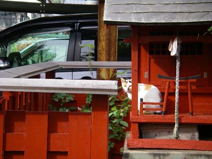 「神様おはようございます 鳥居の前でしゃがんだりしてごめんなさい ネコのすることやから許したって下さいね 」