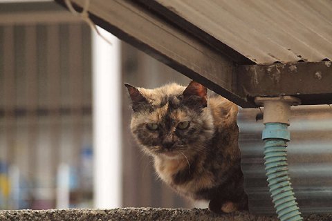 かつて井戸端だったところに水道ができて なごりのカメが置いてあります 毎日井戸端会議が開かれたりネコがおこぼれにありついたりしたはずですが そんなものはなくなり ネコが静かに過ごす空間だけが存在しています
