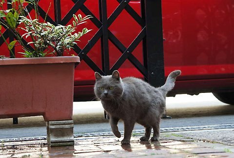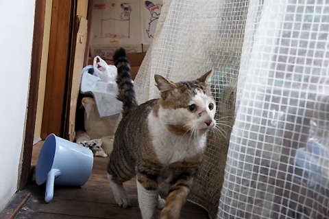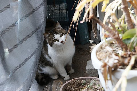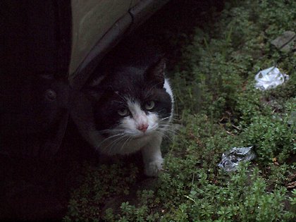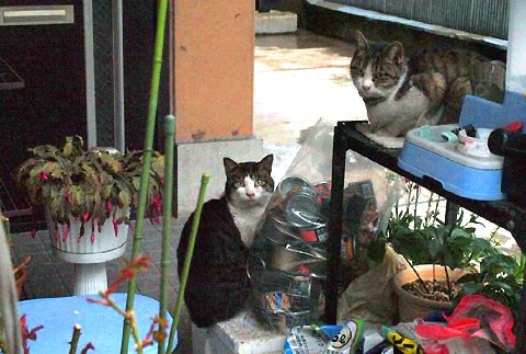 ネコ君 門扉の下をくぐるのは大変厳しそうなのでガレージのシャッターを少し開けてありますが それは事故防止のためであって敷地内を利用する権利を認めたわけでわありません
