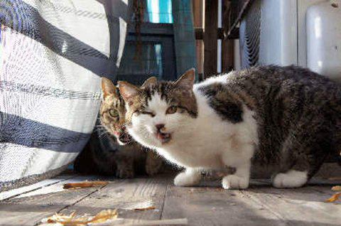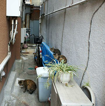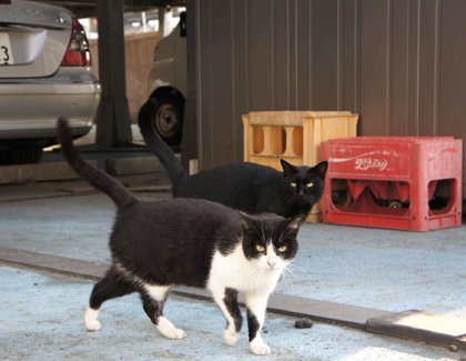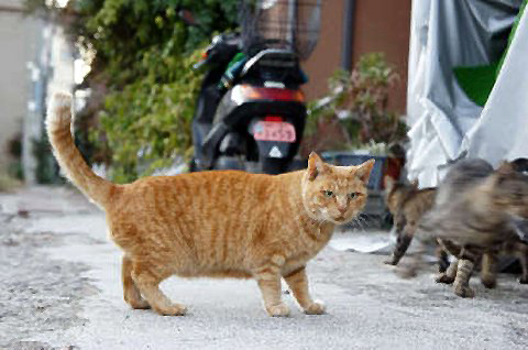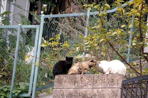 親と兄弟かと思われる3頭。虎猫であっても顔つきや身のこなしまで似ていて、なかなか識別が難しい。