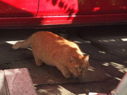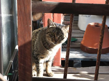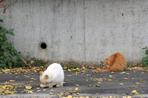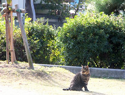 朝の公園は様々な人が忙しく通ります。猫にとって安全な人も居れば危険な人も居ます。一旦人通りのないところまで逃げてきた猫は、逃げる準備をしながらもどる機会をうかがっています。