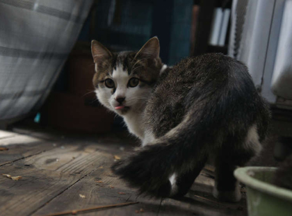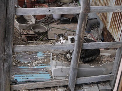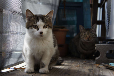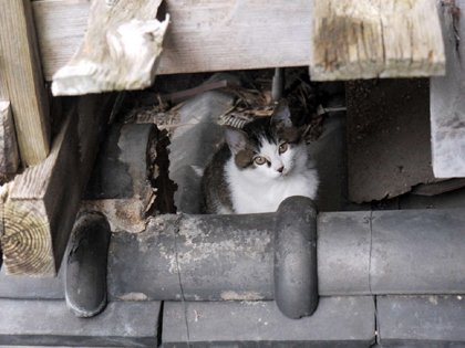 へんなネコが覗いとる