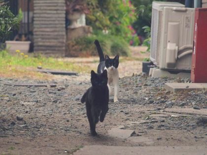 前足が両方とも宙に浮いた瞬間を写すと、2本脚で飛び跳ねているように見えますが、キツネザルではありません、ネコです。