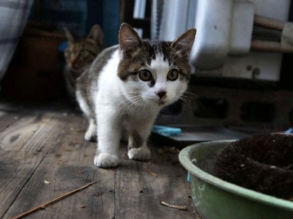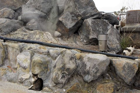 箱根の温泉卵作ってる所のネコさん