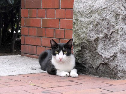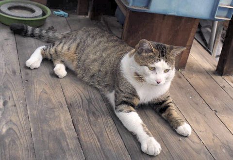 「流れてきた僕も どうやらこの辺りに定着できたようです。 ネコなつっこさと厚かましさが売りですから。」
