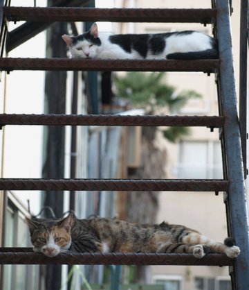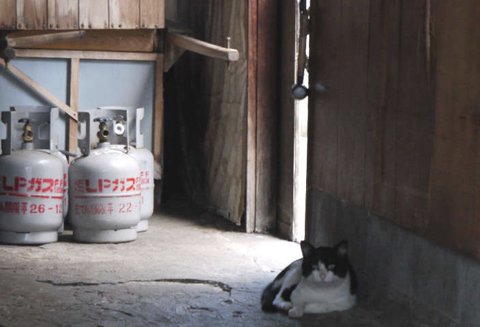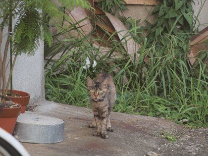 薄埃が積もって閉ざされた門扉、生気を失ったプランターの植物、ネコには落ち着ける空間を提供してくれますが、空き家が増えることは寂しいことです。