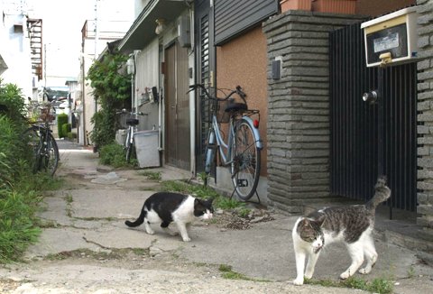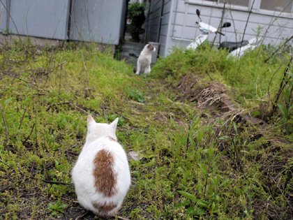 「塀の上から世間の奴らを見下ろしたり、塀の下の隙間をくぐって“ここまでは来れないだろう”と見返すのは俺達ネコが得意とするところで、ある種の優越感を感じる。フェンスの下をくぐって、ほんの少しのところに座って、ネコが悪いことをするといつもうるさい爺さん婆さんの姿を見ながらゆったり毛繕いをする、これが俺の楽しみ。」