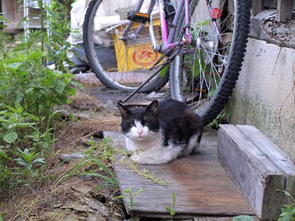 「ヒトにはもはや少し暑いそうだが、ネコには一番快適な季節がやってきたわい。 更地の真ん中に座ると、草の香りの風がさわやか。 また一年、生きてきて好かったような気がする。」
