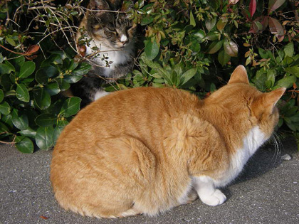 バランスを崩した姿勢のままで、自然にバランスを保っています。猫には普通のことですが、犬にはかなり難しいことかと思えます。昔の有名な水墨画の虎は、猫を見本に描かれたのだということがよく分かります。