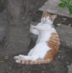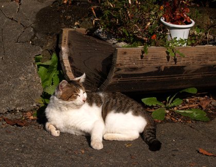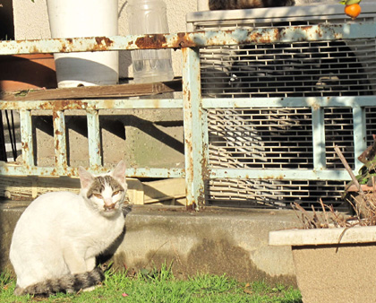 ネコさんがいます。タカシ君です。タカシ君はシャム系で長めの四肢と目に特徴があります。高いところからあたりを見下ろして眺めるのが好きです。今日も観察ポイントの一つから見下ろしています。一番興味を引かれるのはネコ、二番目はスズメや小鳥達、そして行き交う人々なかでも幼い子ども。おばちゃんの井戸端会議は好きですが、夫婦喧嘩のけたたましい声は嫌いです。