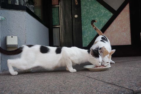 暑い日に ネコが食べる量の三倍以上の餌を撒いて 腐らせて 悪臭が立ち込めて 結果的にネコの立場を悪くして 台風明けの今日は いつもより少なくて